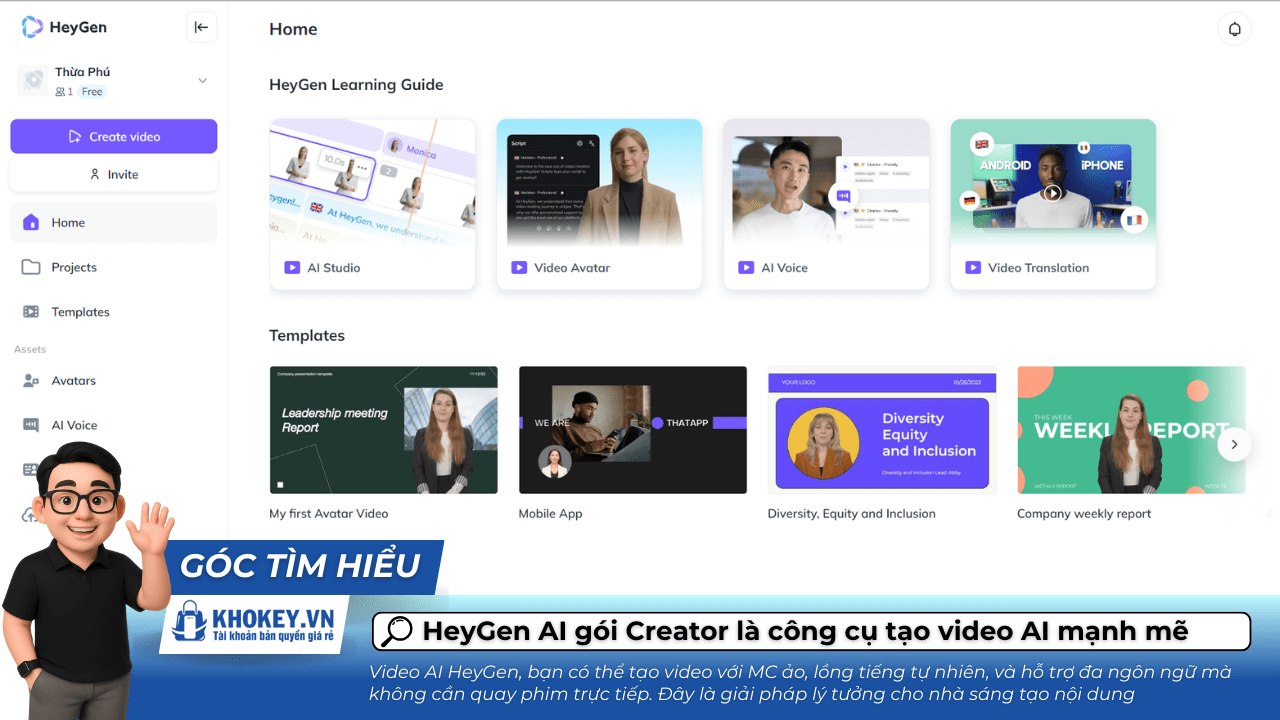 Với Video AI HeyGen giá 550K/tháng, KHOKEY.VN giúp bạn dễ dàng tạo video chuyên nghiệp mà không lo về chi phí.