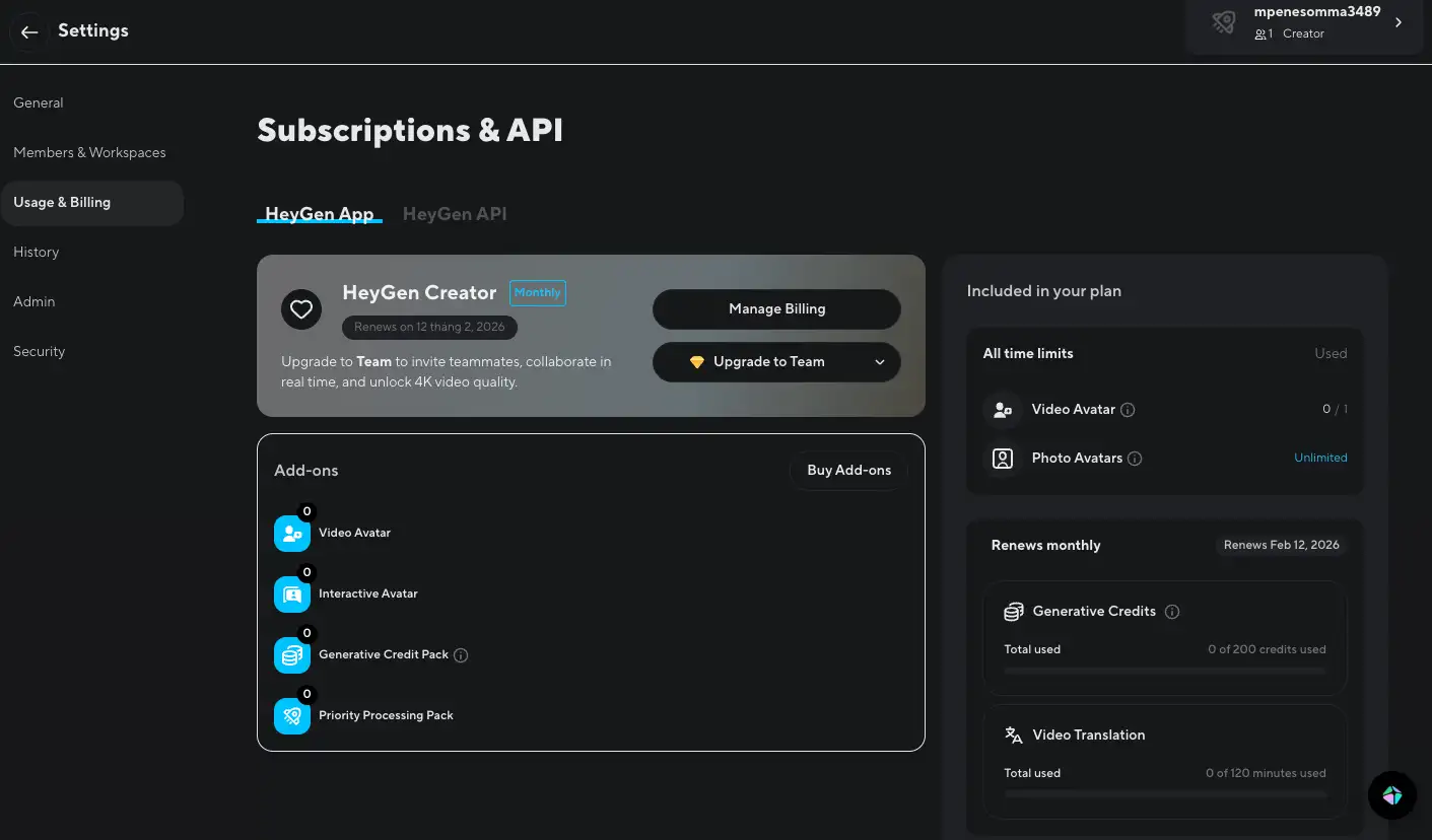 Sau khi mua, bạn nhận key qua email. Đăng nhập vào app.heygen.com, nhập key vào mục kích hoạt và bắt đầu sử dụng.
