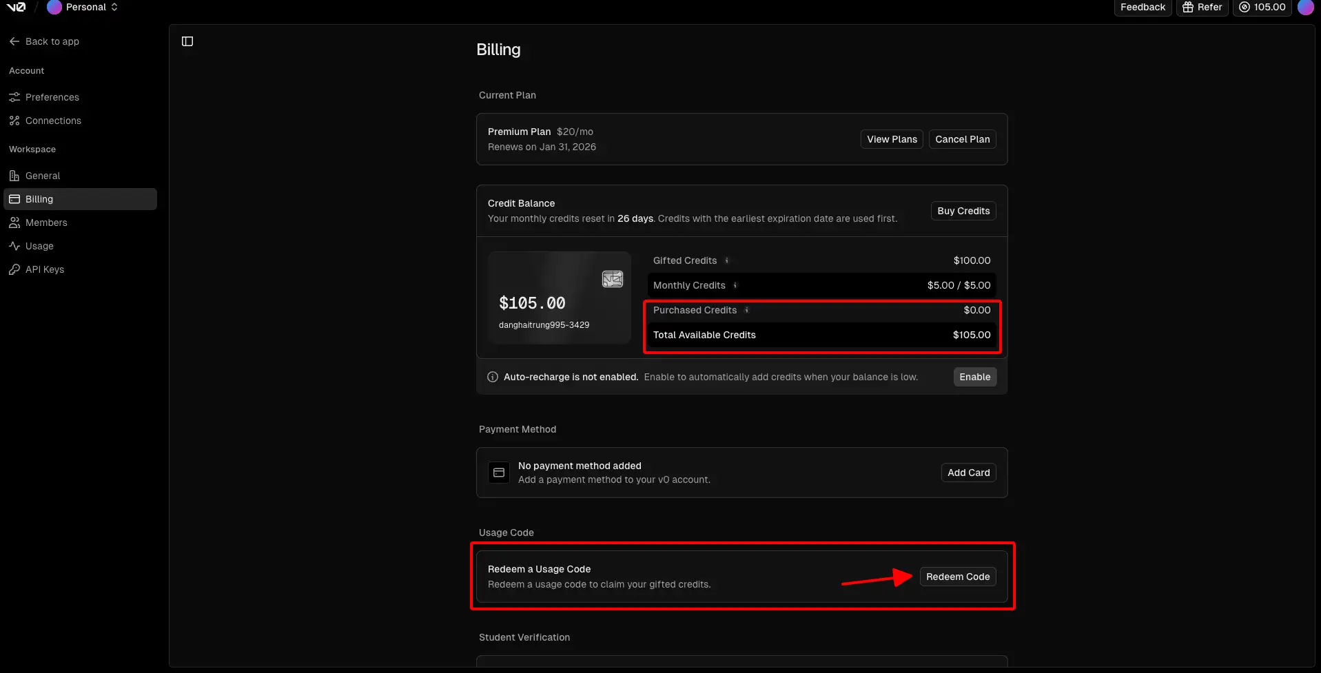 Nâng Cấp v0.app Vercel Premium Gói Nạp 20$ Credit